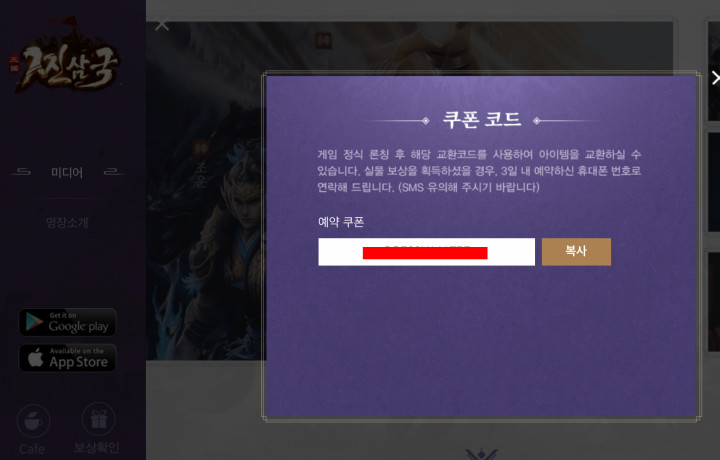 꼭 보상 확인하셔서 쿠폰 확인하셔서 등록하시길 바라요. 초선을 받으실 수 있답니다. 상단의 홈페이지를 방문하신 후 좌측의 보상 확인을 하시면 쿠폰 코드 수령이 가능합니다.(사전등록하신 연락처를 넣어주셔야 합니다.)